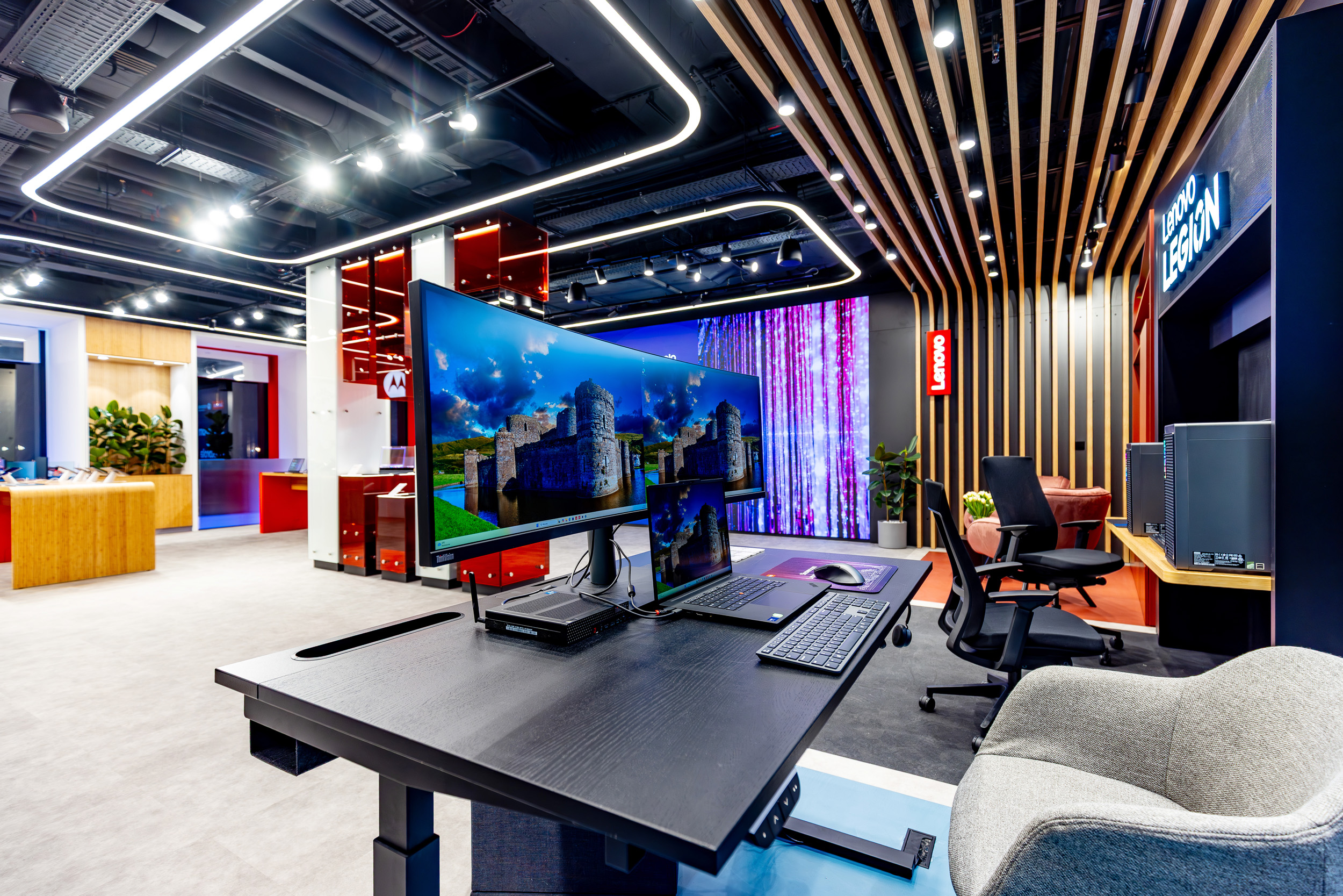 Showroom Lenovo & Motorola to przestrzeń stworzona z myślą o tych, którzy chcą być bliżej technologii. Znajdziesz tu nie tylko strefę produktową, biznesową i gamingową, ale także wyjątkowe środowisko do edukacji i spotkań. To tutaj możesz przetestować najnowsze urządzenia, wziąć udział w warsztatach i rozwinąć kompetencje cyfrowe w praktyce. Doświadczaj, ucz się i twórz – w przestrzeni, która łączy ludzi z innowacjami.
